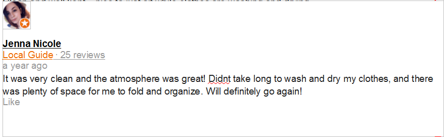 I love doing my laundry at their facility. There are always free laundromats and I’ve never had any problems using them. I’ve been to other places in the area but since I found this one, I’ve only been coming here.